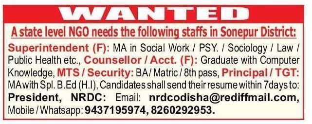 All the information provided on www.nuaodisha.com is for informational purposes only. www.nuaodisha.com makes no representations as to accuracy, completeness, currentness, suitability, or validity of any information on this site and will not be liable for any errors, omissions, delays in this information or damages arising from its display or use. We have collected all the contents from Corresponding Sites and public domains like Facebook / Google/ Different Job Portals etc for public use. Please don't pay anybody bribe for the false job promise, we will not be responsible for any kind of liable or loss. We have no mechanism to check validity or authenticity of any Organisation, please make proper enquiry before joining or applying for any jobs at your own. The original contents are owned by their respective owner/creator and nuaodisha.com does not hold any copyright on it.