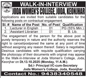 Walk-in at Joda-Womens-College Sep-25