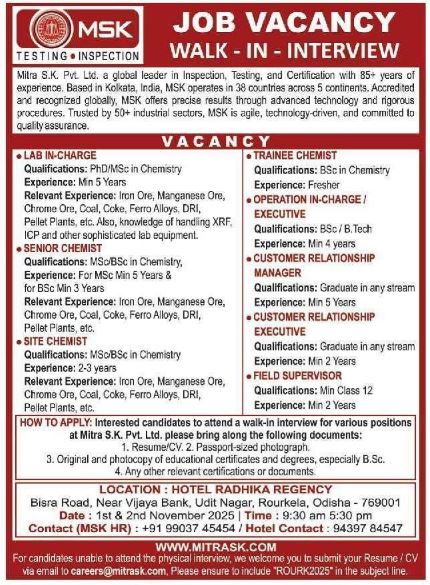 Walk-in at Mitra-SK-Pvt-Ltd Oct-25