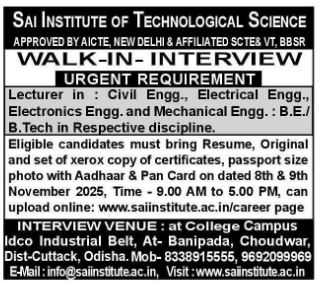 Walk-in at Sai-Institute-of-Technological-Science Nov-25