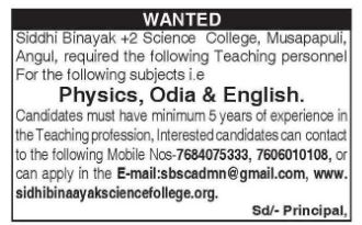 All the information provided on www.nuaodisha.com is for informational purposes only. www.nuaodisha.com makes no representations as to accuracy, completeness, currentness, suitability, or validity of any information on this site and will not be liable for any errors, omissions, delays in this information or damages arising from its display or use. We have collected all the contents from Corresponding Sites and public domains like Facebook / Google/ Different Job Portals etc for public use. Please don't pay anybody bribe for the false job promise, we will not be responsible for any kind of liable or loss. We have no mechanism to check validity or authenticity of any Organisation, please make proper enquiry before joining or applying for any jobs at your own. The original contents are owned by their respective owner/creator and nuaodisha.com does not hold any copyright on it.