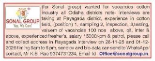 All the information provided on www.nuaodisha.com is for informational purposes only. www.nuaodisha.com makes no representations as to accuracy, completeness, currentness, suitability, or validity of any information on this site and will not be liable for any errors, omissions, delays in this information or damages arising from its display or use. We have collected all the contents from Corresponding Sites and public domains like Facebook / Google/ Different Job Portals etc for public use. Please don't pay anybody bribe for the false job promise, we will not be responsible for any kind of liable or loss. We have no mechanism to check validity or authenticity of any Organisation, please make proper enquiry before joining or applying for any jobs at your own. The original contents are owned by their respective owner/creator and nuaodisha.com does not hold any copyright on it.