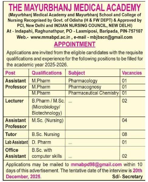 Walk-in at The-Mayurbhanj-Medical-Academy Dec-25