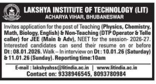 All the information provided on www.nuaodisha.com is for informational purposes only. www.nuaodisha.com makes no representations as to accuracy, completeness, currentness, suitability, or validity of any information on this site and will not be liable for any errors, omissions, delays in this information or damages arising from its display or use. We have collected all the contents from Corresponding Sites and public domains like Facebook / Google/ Different Job Portals etc for public use. Please don't pay anybody bribe for the false job promise, we will not be responsible for any kind of liable or loss. We have no mechanism to check validity or authenticity of any Organisation, please make proper enquiry before joining or applying for any jobs at your own. The original contents are owned by their respective owner/creator and nuaodisha.com does not hold any copyright on it.
