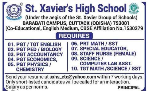 Vacancy at St-Xaviers-High-School-Barbati Jan-26