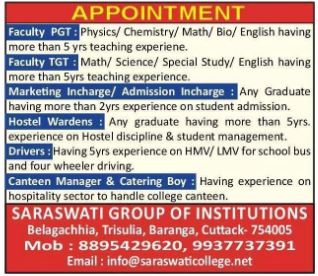 Vacancy at Saraswati-Group-of-Institutions Feb-26