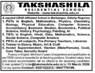 All the information provided on www.nuaodisha.com is for informational purposes only. www.nuaodisha.com makes no representations as to accuracy, completeness, currentness, suitability, or validity of any information on this site and will not be liable for any errors, omissions, delays in this information or damages arising from its display or use. We have collected all the contents from Corresponding Sites and public domains like Facebook / Google/ Different Job Portals etc for public use. Please don't pay anybody bribe for the false job promise, we will not be responsible for any kind of liable or loss. We have no mechanism to check validity or authenticity of any Organisation, please make proper enquiry before joining or applying for any jobs at your own. The original contents are owned by their respective owner/creator and nuaodisha.com does not hold any copyright on it.