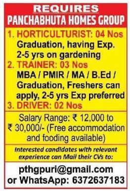 Wanted for Panchabhuta-Homes-Group March-26
