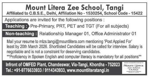 Vacancy at Mount-Litera-Zee-School-Tangi March-26