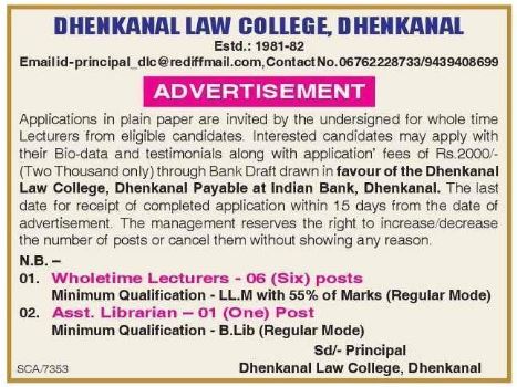 Vacancy at Dhenkanal-Law-College March-26