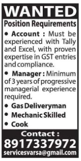 Accountant/Manager/Gas Deliveryman/Mechanic/Cook