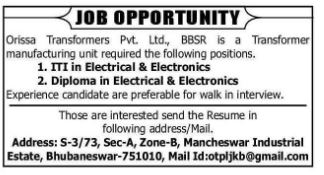 Job-Vacancy at Orissa-Transformers-Pvt-Ltd Oct-25