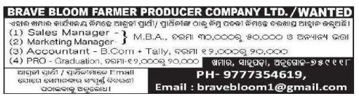 Wanted for Brave-Bloom-Farmer-Producer-Company-Ltd Jan-26