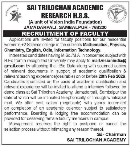Vacancy at SAI-Trilochan-Academic-Research-HSS Feb-26