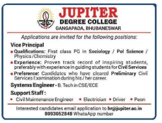 Job-Vacancy at Jupiter-Degree-College March-26