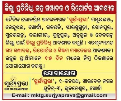 Post-Vacancy at Suryaprava-Daily-Newsapaper April-26