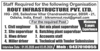 Walk-in at Rout-Infra-Pvt-Ltd April-26