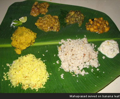Everyday throughout the year fiftysix varieties of dishes are prepared and offered to the Deities of the Jagannath Temple. These consist of preparation of rice,dal and other selected vegetables. The food cooked in accordance with prescribed procedures, and is offered first to Lord Jagannath and then to Goddess Vimala after which it turns into Mahaprasad. Mahaprasad, the holy food, is freely shared by people of all castes and creeds without any discrimination. In all religious and social rituals in Puri and Orissa, Mahaprasad plays a very important role. Exchange of Mahaprasad between two persons belonging to two different castes binds them in an abiding relationship. Mahaprasad and other offerings made to the deities are sold to public in Ananda Bazar on the north-east corner of the outer enclosure of the Jagannath temple, where every day thousands of piligrims buy and eat various types of food.